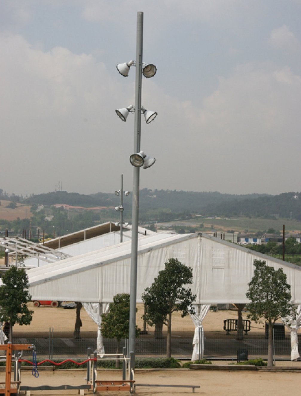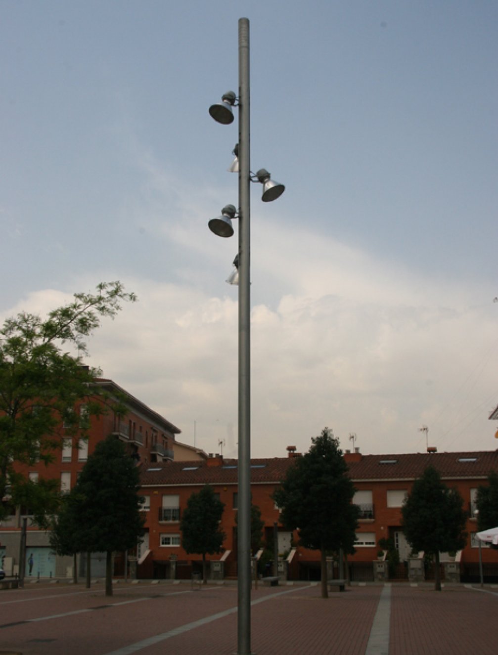 - MÂT TUBULAIRE, EN ACIER GALVANISÉ ET THERMOLAQUÉ, PREPARE POUR RECEVOIR JUSQU’A 15 PROJECTEURS EN 120º. SEMELLE DE FIXATION RONDE AVEC 8 TIGES.
