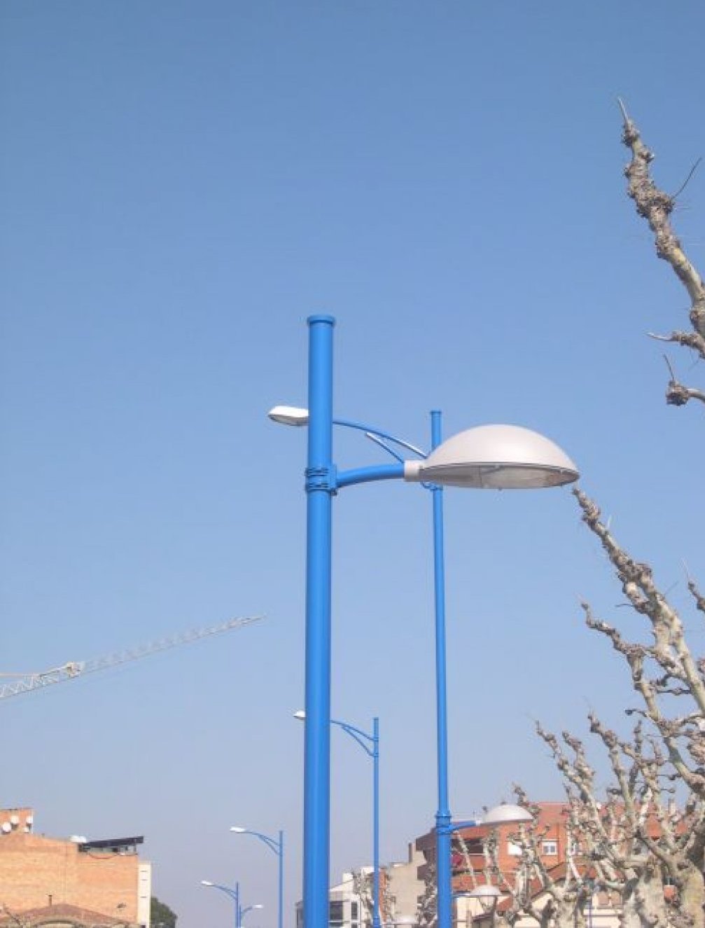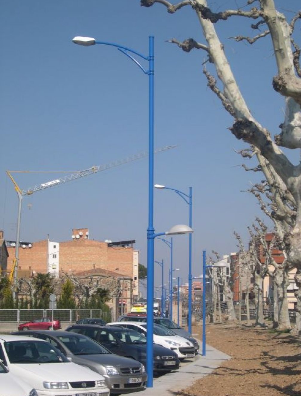 - Mât retreint, fabriqué en acier galvanise et thermolaqué, equipe d’une crosse simple ou double. Possibilite de crosse pieton