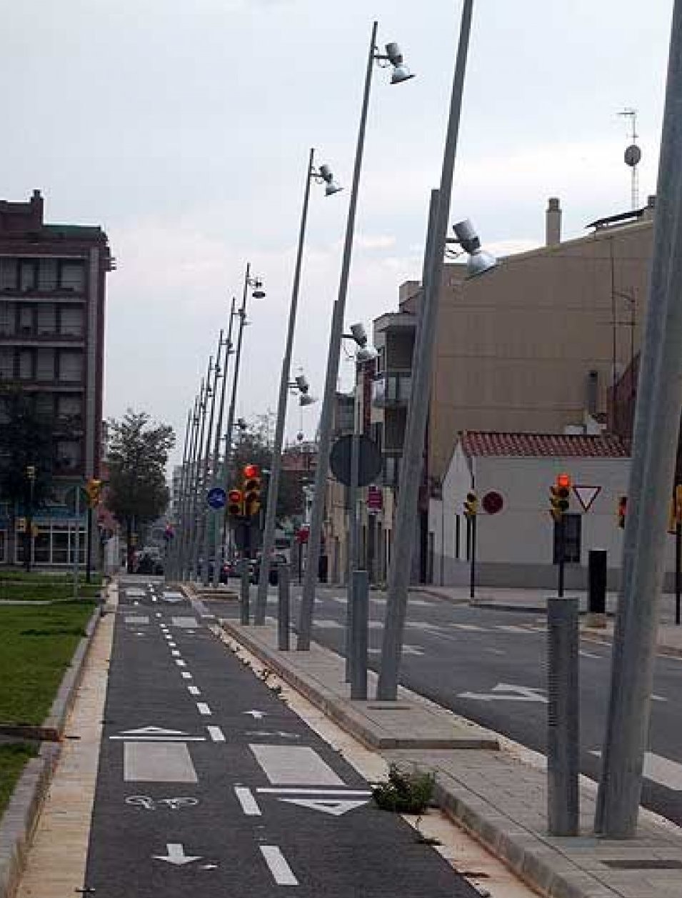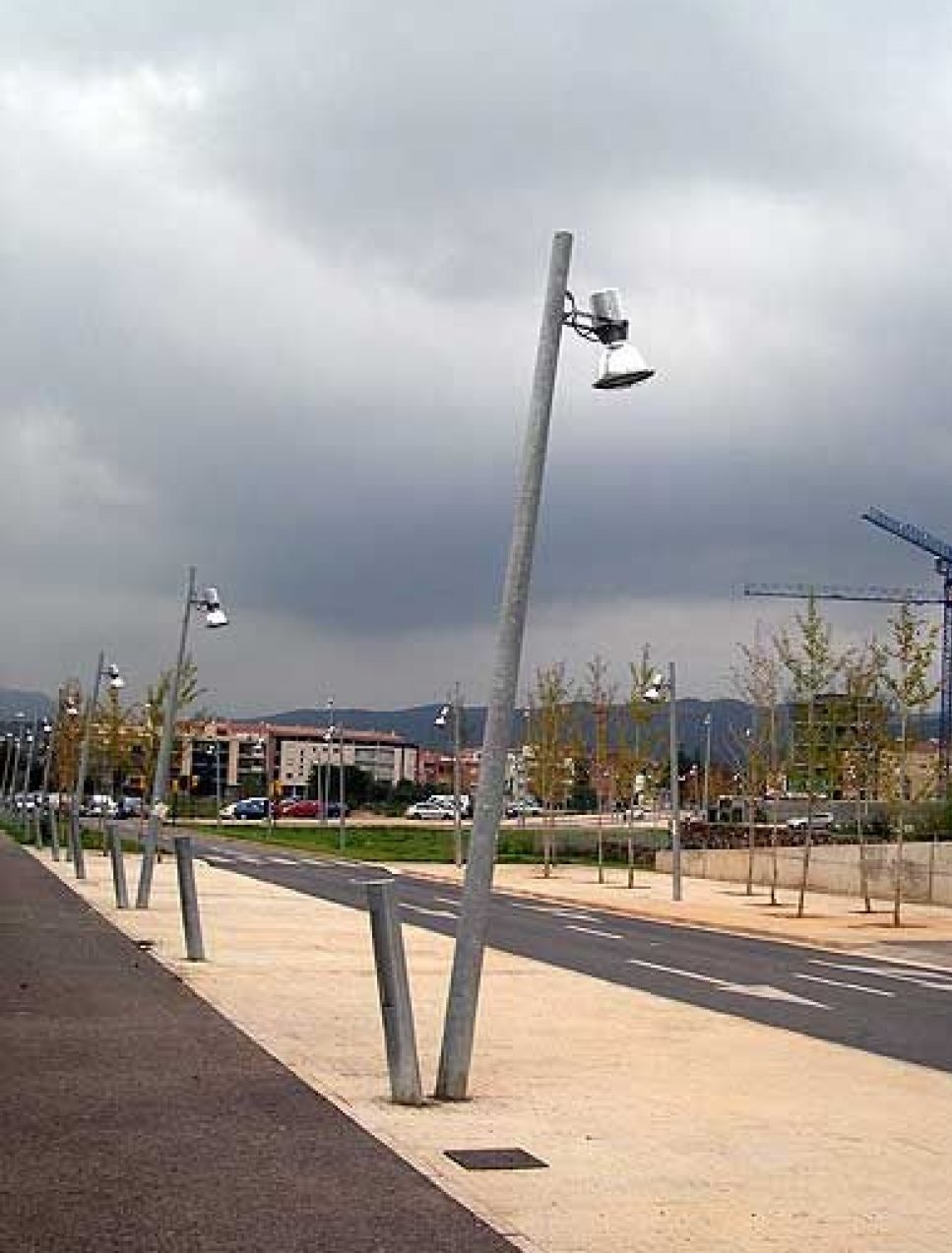- Systeme de mâts et borne avec une inclination de 5º, geometrie cylindro-conique pour les mâts et tubulaire pour la borne. Designe pour integrée projecteurs.
